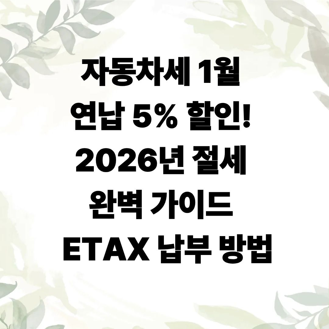 자동차세 연납 5% 할인 💸 1월이 가장 이득! 스마트폰 3분이면 끝, 전자고지로 더 간편하게 🌿 “요즘 세금, 이렇게 내는 게 트렌드.”